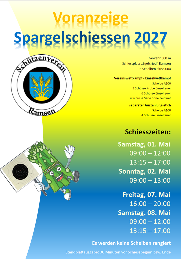 Nach dem erfolgreichen Standweihschiessen 2017, wird nun im Frühjahr 2025 das nächste Spargelschiessen in Ramsen durchgeführt.